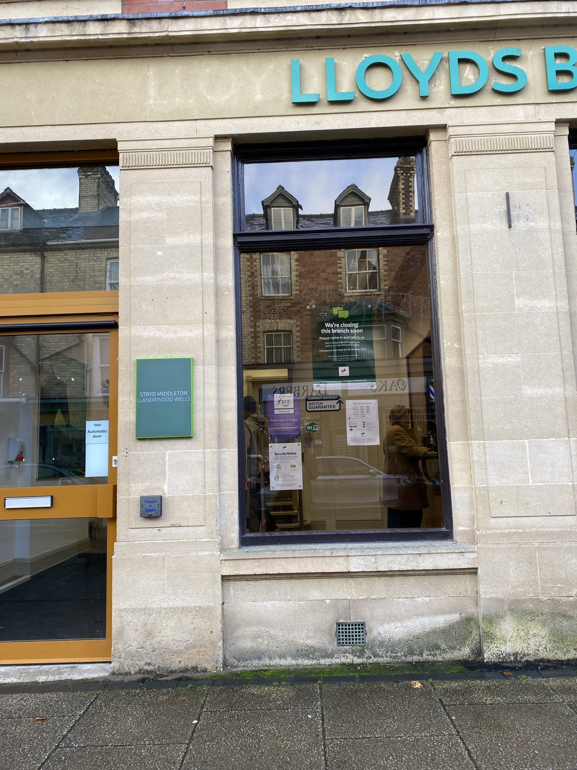 Builth Wells is the closest other town and branches there have also closed leaving only Barclays. Not news, but it is another nail in the coffin of some High Streets, and apart from chic “atmospheric” restaurants what else can one use these buildings for?
